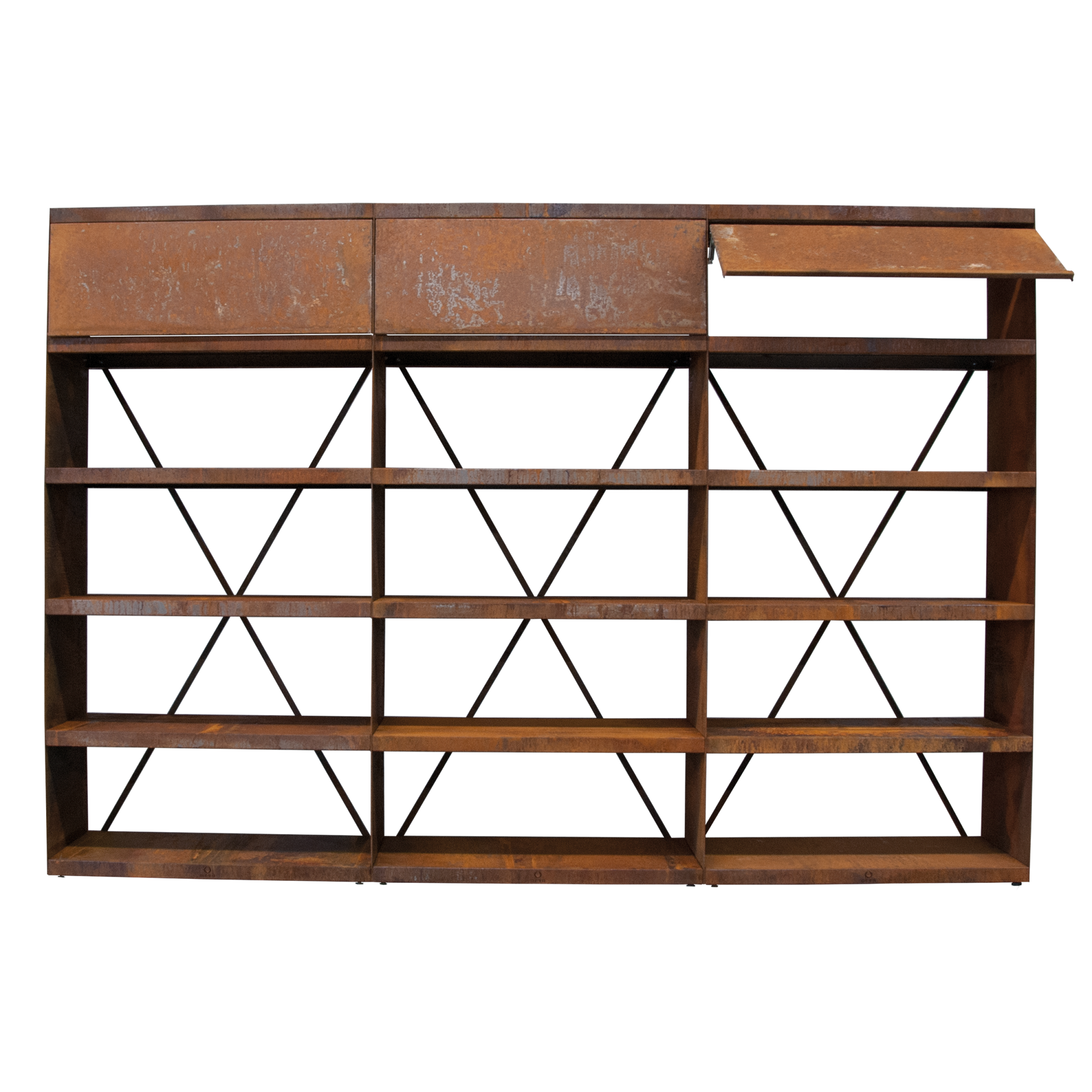 OFYR 3 mts corten de acero corten especial para completar los espacios de Ofyr, en este caso es una estantería de 300 x 216 cm. de altura.