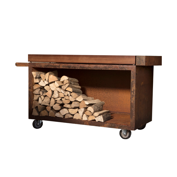 Disponible en corten, Mise en Place OFYR Corten 135 cm, incluye una tabla de cortar de madera y opciones para