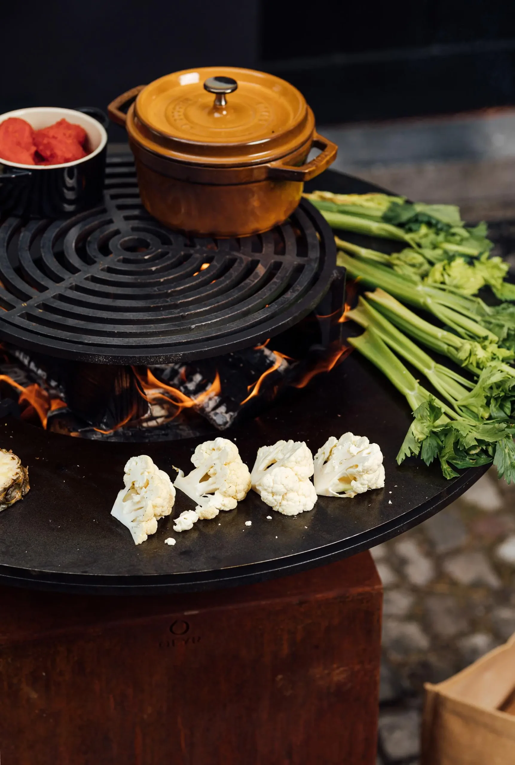 Pensada para disfrutar de la cocina al aire libre, permite preparar una gran variedad de platos gracias a su amplia plancha circular de acero negro. Desde carnes y pescados hasta verduras o mariscos, todo se puede cocinar alrededor del fuego mientras se comparte un momento único con familiares o amigos.